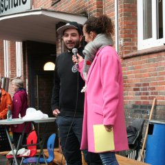 След това нашата директорка г-жа Алберс приветства гостите, сред които бяха бившите директори г-н Кунце и г-жа Хойер, както и бивши учители. Г-жа Алберс благодари на целия персонал на училището. На някои ученици беше позволено да излязат на сцената и да разкажат какво толкова харесват в училището.