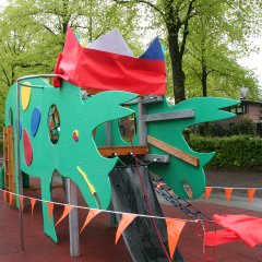 Por último, la Sra. Albers dio la bienvenida al escenario al alcalde, Rainer Doetkotte. Tras un breve discurso, inauguró oficialmente el rocódromo como padrino del nuevo dinosaurio.