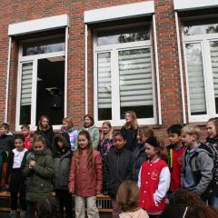 A continuación, nuestra directora, la Sra. Albers, dio la bienvenida a los invitados, entre los que se encontraban los antiguos directores, el Sr. Kunze y la Sra. Heuer, así como antiguos profesores. La Sra. Albers dio las gracias a todo el personal de la escuela. Se permitió a algunos alumnos subir al escenario y hablar de lo que más les gustaba de la escuela.