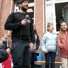 A zenei program ezután folytatódott: a rapper Dennis Buss előzetesen megkomponálta és megírta a Viktória új iskolai dalát, amelyet kiválasztott tanulókkal a hangstúdióban rögzített. Örömmel fogadta el a meghívást az ünnepségünkre, és 5 gyerekkel együtt lépett színpadra. Az egész diákság hangosan támogatta őt!