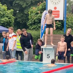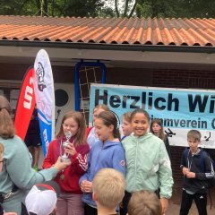 Несмотря на дождь, наши дети отдали все силы на соревнованиях по плаванию среди школ Гронау в этом году. Их усилия были вознаграждены, и мы заняли второе место в общем зачете.