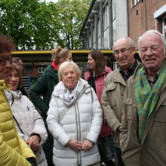 Müdiremiz Bayan Albers daha sonra aralarında eski müdürler Bay Kunze ve Bayan Heuer'in yanı sıra eski öğretmenlerin de bulunduğu konuklara hoş geldiniz dedi. Bayan Albers okuldaki tüm personele teşekkür etti. Bazı öğrencilerin sahneye çıkarak okulda en çok neyi sevdiklerini anlatmalarına izin verildi.