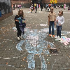 30 Ağustos 2024 Cuma günü öğrencilerimiz okulun başlaması münasebetiyle çok sevdikleri boyama etkinliğini gerçekleştirdiler. Viktoriaschule'deki tüm çocuklar okul bahçesinin gri zeminini sevgiyle rengarenk boyadılar. Sokak tebeşiriyle yaratıcılıklarını özgürce sergileyebildiler.